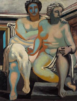 Живописец и теоретик Джорджо де Кирико был одним из основателей направления метафизической живописи. Итальянские «метафизики», призывавшие к традиционной строгости форм и во многом следовавшие классическим тенденциям, стремились в своих картинах создать образ застывшего мира, «очищенного» пространства, из которого будто выкачали воздух. Часто вырывая реальные предметы из их привычного контекста, художники-«метафизики» вкладывали в них таинственный, магический смысл. Их теоретические манифесты носили ярко выраженный философский характер. Метафизическая живопись, как и дадаизм, подготовила рождение сюрреализма. В написанной в 1926 году картине «Римлянки» Джорджо де Кирико выбирает типичный для данного направления мотив. Художник подчеркнуто пластично изображает две огромные женские фигуры, напоминающие римские статуи. Помещенные на фоне античных руин, они кажутся пребывающими на грани сна и яви, обращая нас в область метафизики. Подобное тяготение к «внутренним» образам было характерной чертой творчества Джорджо де Кирико в этот период.